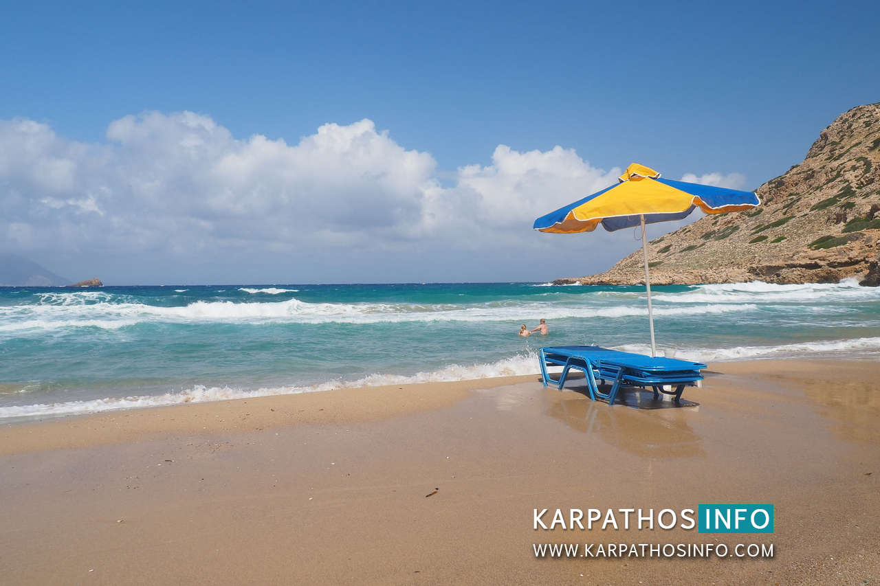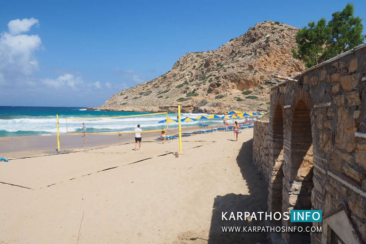 The area of Agios Nikolaos beach is a well organized place with some parasols and sunbeds for rent, showers, changing rooms, etc. The coast is not as long and spacious as other beaches of Karpathos Island, but is well enough for travellers who arrive here.